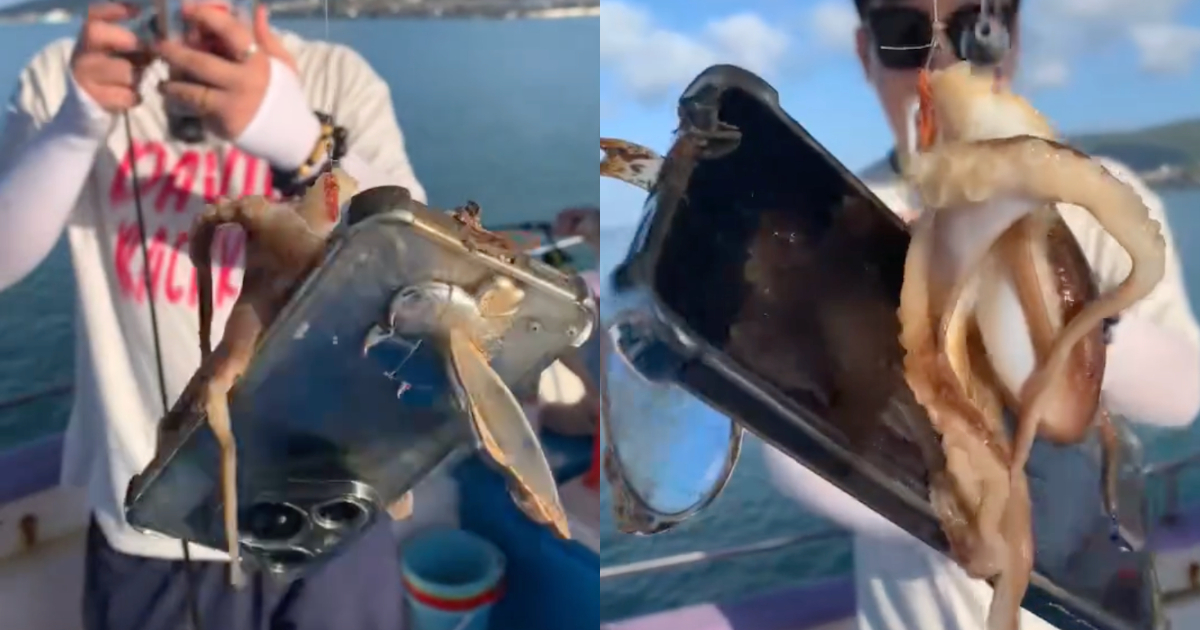 「釣章魚送手機哈!」視頻中船長調侃說。