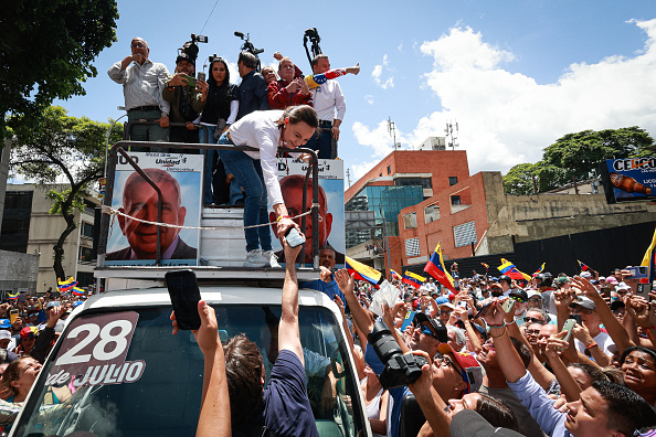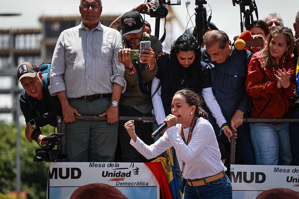 數以千計反對派支持者走上街頭,要求伸張正義,而遭馬杜羅威脅逮捕的反對派領導人馬查多(Maria Corina Machado)不再躲藏,也加入示威行列,她乘坐的卡車經過時,支持者無不大喊「自由!」