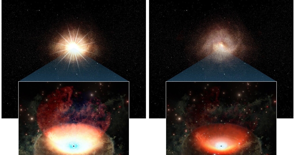 這次發現的J0218−0036,正好從「大吃」狀態切換到「節食」模式。研究人員用多台大型望遠鏡(包括加那利大望遠鏡、凱克天文台)和檔案數據(甚至70年前的老照片)全面分析後得出結論:不是塵埃雲擋住了光線,而是流入黑洞的氣體流量在短短7年內驟減到原來的1/50!黑洞的「燃料」供應突然斷了。