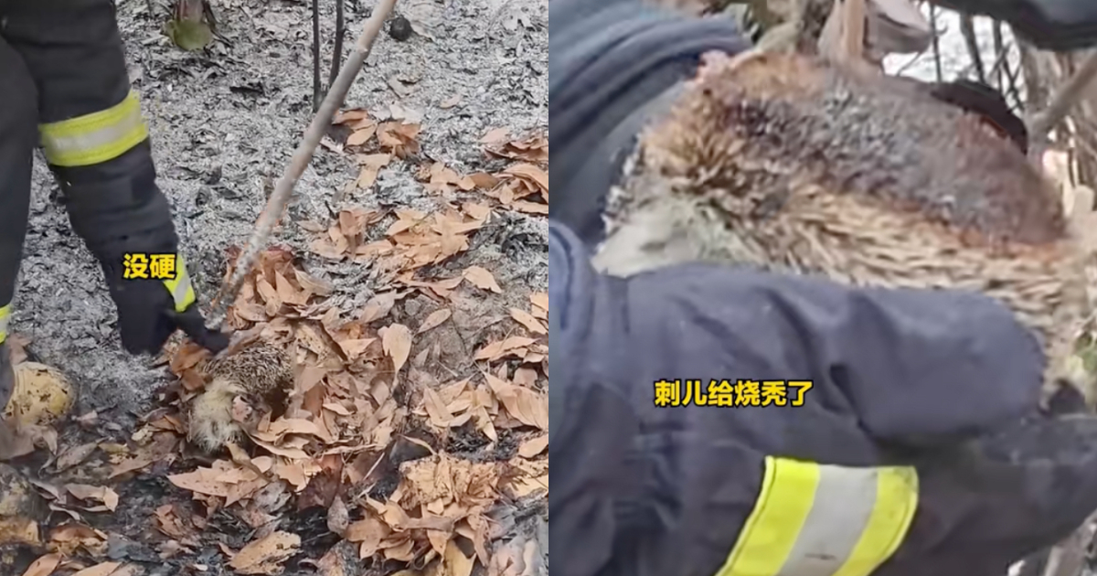 有消防員把小刺蝟從地上拾起來,檢查了一下,發現小刺蝟的刺都給燒禿了。然後把它小心地放在一處落葉中,讓它繼續冬眠。「讓它繼續睡吧」。