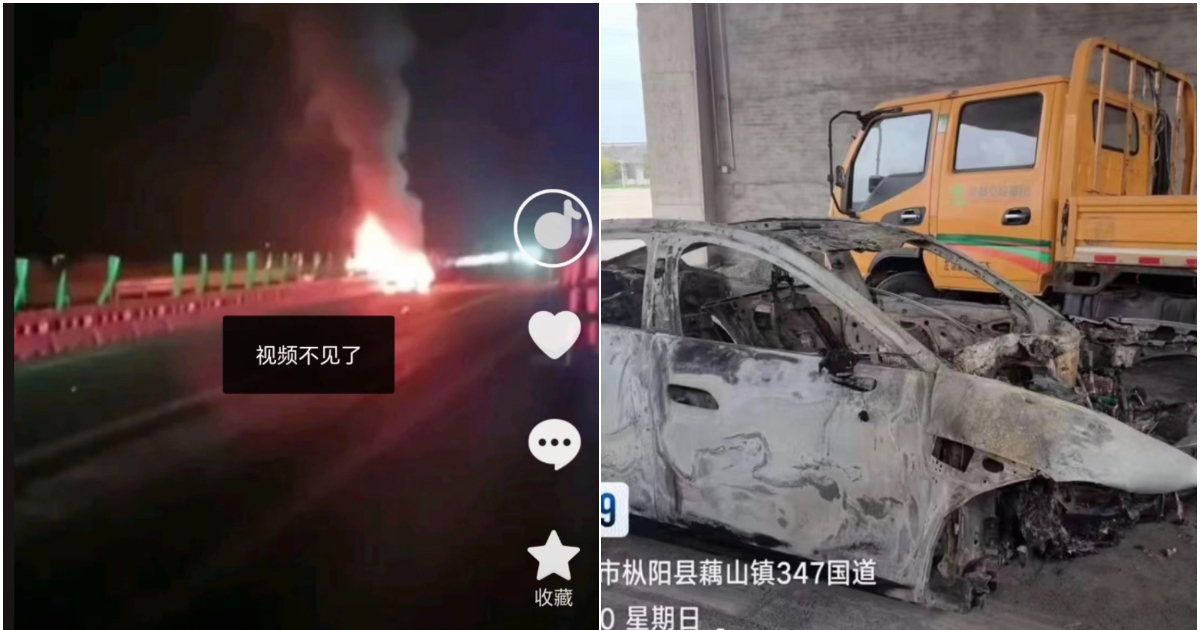 網傳的現場視頻顯示,車子嚴重燒燬,但車門沒有打開。