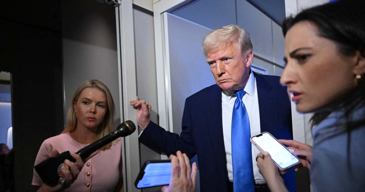 週日傍晚,川普總統達成空軍一號從佛州返回白宮,途中回答記者提問。