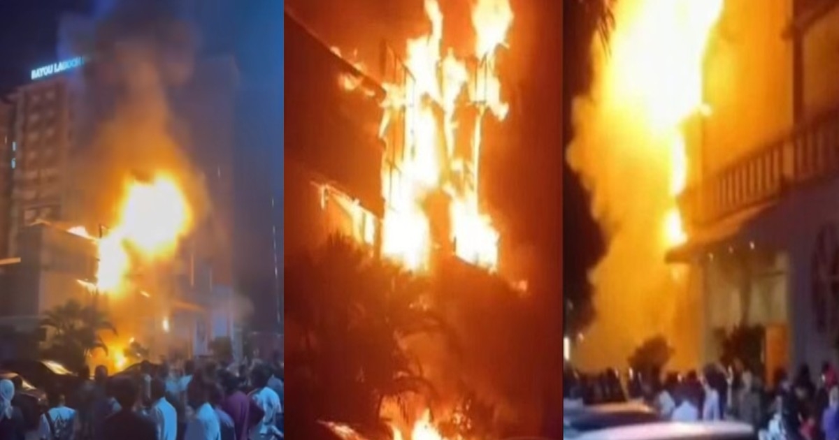 網路上流傳的影片顯示,原來只是為細微火光,但隨即迅速竄燒,熊熊烈火吞噬整個天花板,濃煙竄升,照亮整個宴會廳。