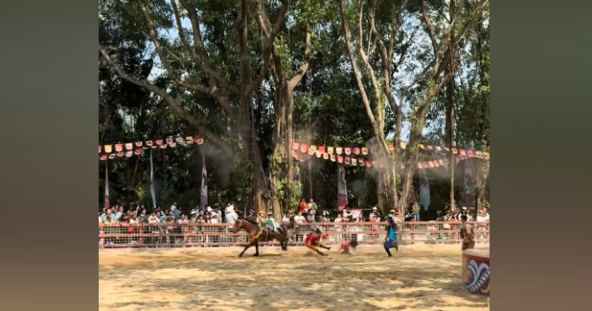 網傳的視頻顯示,一匹馬突然受驚,情緒失控,在場地中央跳躍、奔走,一名身穿紅色演出服裝的女子從馬背摔下,她下墜時腳部疑似被馬鐙纏住,無法與馬分離。受驚的馬匹拖著騎手在場內拖行、翻滾、狂奔,塵土飛揚。(點擊觀看相關視頻)