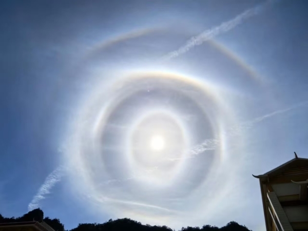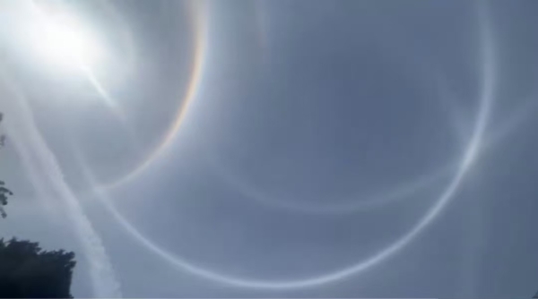 網傳大量視頻和照片顯示,廣西桂林、崇左等地都出現日暈。但各地觀測到的日暈不盡相同。有的稍顯單調,但有的非常複雜。