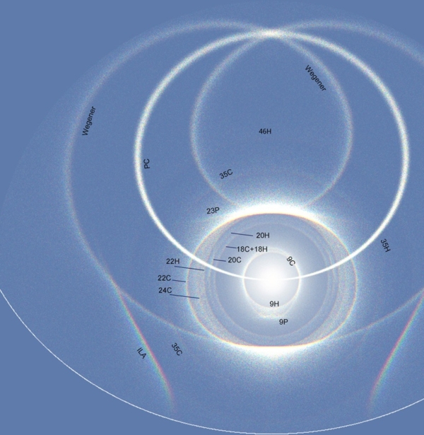 有懂行的大陸網民總結,天空至少出現17種日暈,並一一標注。