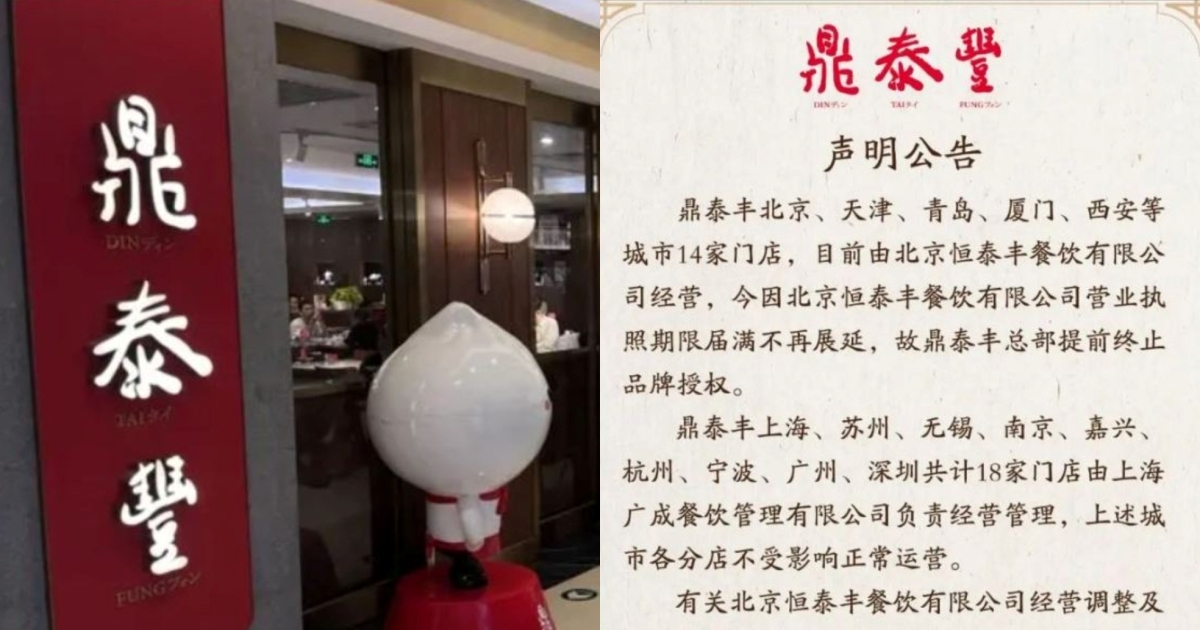 今年8月,台灣鼎泰豐曾發表聲明稱,將會提前終止對北京恆泰豐的品牌授權。韓家宸隨即於今年8月26日宣布,鼎泰豐品牌在華北的14家門店將於10月底熄燈(停止運營)。於是,作為,北京恆泰豐餐飲公司唯一股東的北京巨人公司,趕在華北所有門店關閉前召開臨時股東大會,全面撤換恆泰豐高層,並罷免了韓家宸的董事長職務。