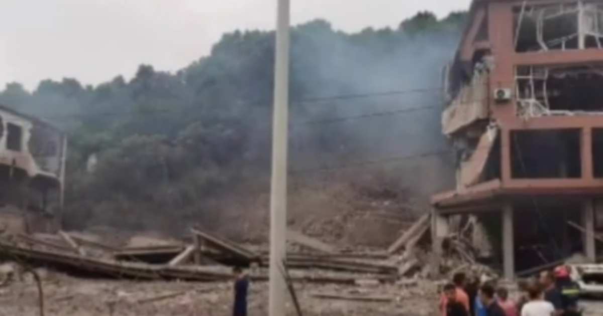 網傳的視頻顯示,在爆炸的瞬間,巨大的橘色火光衝天。視頻顯示,一棟沿街樓房爆炸了,幾乎變成廢墟,大面積房屋倒塌。倒塌房屋周邊為四層樓房,現場有很多人圍觀。