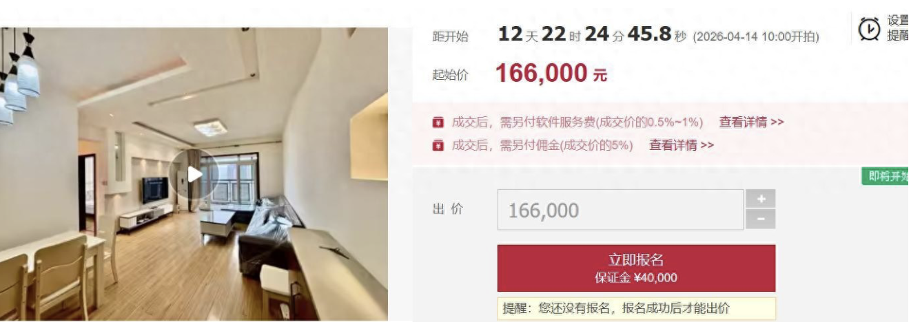 拍賣公司工作人員稱,上次以96.6萬元拍下的業主,因未能成功湊齊費用,最終無法成交只能繼續上架拍賣,並被扣掉5萬元保證金。