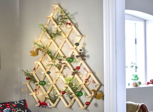 Vinterfint牆飾是宜家的聖誕系列產品之一,官網上將其描述為「為地面空間有限的人提供的松木聖誕樹替代品」,只需幾個螺絲,即可輕鬆安裝在牆上。