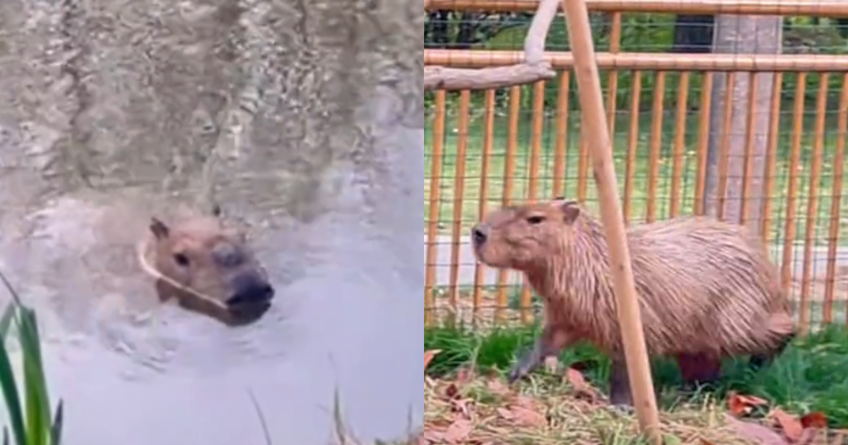 據介紹,「卡皮巴拉」是水豚的英文直譯「capybara」,水豚不僅是游泳健將,而且還能進行長達5分鐘左右的潛水。這三個小傢伙逃離「公寓」後,立刻就進入了動物園的鶴鳴湖中。