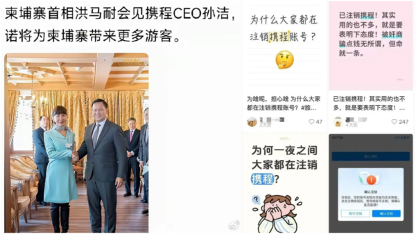 攜程推動「柬埔寨旅遊」,顯然與中共的政治立場有關。目前,中共官媒也在開足馬力,宣傳赴柬埔寨免簽,赴俄羅斯免簽等等,引發網民吐槽。(相關文章:柬埔寨宣布「中國公民免簽」 陸網驚嚇:度假還是渡劫 )