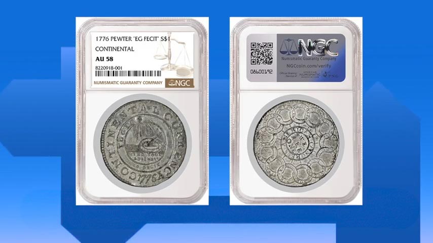 記者:這枚「大陸幣」(Continental Dollar)是由美國大陸會議(Continental Congress)於1776年授權鑄造的,當時正值美國宣布獨立之際,所以非常具有紀念價值。