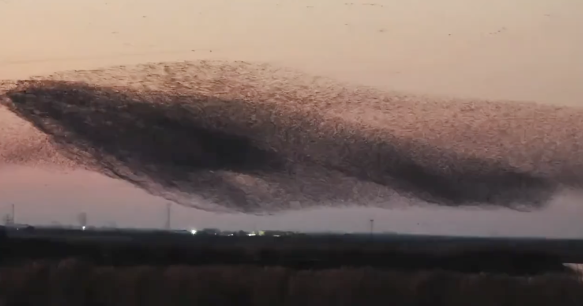 視頻顯示,數以萬計的候鳥密密麻麻地在天空翱翔,時而扶搖直上,時而俯衝直下,隊形不斷地變化,酷似《逍遙遊》中所說的「北冥有魚,其名為鯤」。