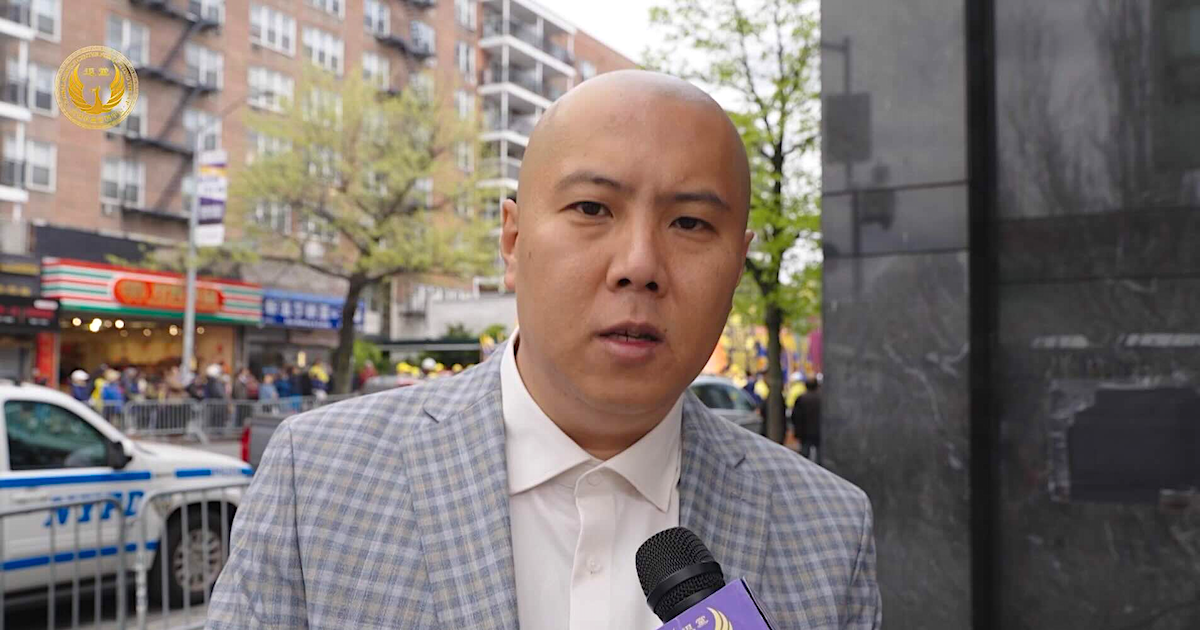 2024年4月21日,大紐約地區部分法輪功學員和各界人士在紐約法拉盛舉行盛大遊行和集會,紀念1999年法輪功學員「四二五」和平上訪25周年。行走的路人羅先生看到遊行和集會後非常激動有感而發: