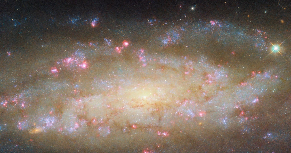 天文學家研究星系的第一步,通常從收集「光」開始——但這裡的「光」遠不止我們肉眼可見的範圍。宇宙中的物體會發射各種波長的電磁輻射,包括可見光、紫外線、紅外線、X射線和射電波。天文學家藉助不同類型的望遠鏡捕捉這些信號,每種波段都能揭示星系的獨特面貌。例如,NASA/ESA的哈勃太空望遠鏡擅長捕捉可見光和紫外光,幫助觀測星系的結構和恆星活動。在NGC 7456的圖像中,我們能清晰看到螺旋臂上的精細細節:那些綻放的粉紅色發光區,正是新恆星形成的「溫床」。這些區域富含氫氣,雲層被新生恆星照亮,散發出標誌性的紅光。