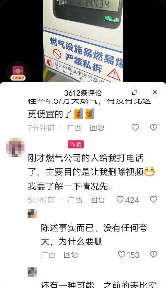 與此同時,柳州當局還在忙著「消聲」,逼迫抱怨燃氣費高漲的居民刪帖刪視頻。