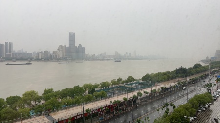 有照片顯示,暴雨導致武漢長江段段水位暴漲,岸邊的沿江大道都被淹了。