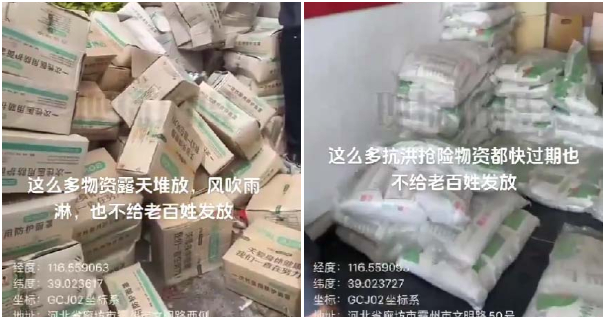 有網民在推特上嘲諷:「寧可爛了也不給災民,村長的親戚又用不完,只能風吹日晒了,畢竟,上級沒有給物資修個配套倉庫。」