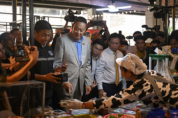 中午時刻,他按照既定行程在副總理兼交通部長蘇利亞(Suriya Juangroongruangkit)和曼谷市長查察(Chadchart Sittipunt)陪同下視察一處位在曼谷市中心天橋下的市場,了解攤販和民眾的需求。