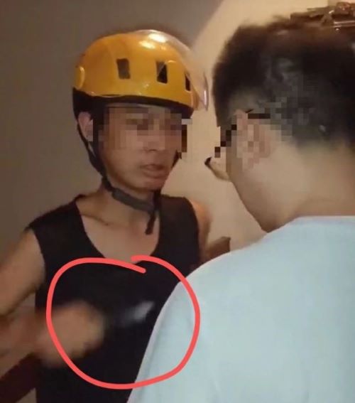 快遞員則大聲回復道:「我敲半天門你們不開門!」 他隨後舉起手中的快遞包裹說,「我就是來還給你的。」