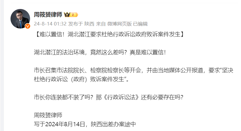 也有網友說,「一不小心說了實話。」「潛江這樣說一點問題都沒有,因為其他很多地方都已經『杜絕』了啊,我們上海就是。」「有的地方沒說,只做。」「《行政訴訟法》是用來忽悠老百姓的。」