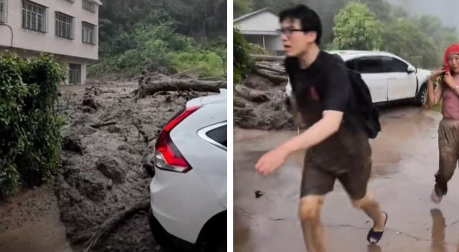 拍攝視頻的網民說,這裡正在發生山體滑坡,還有的人關在屋裡沒出來。