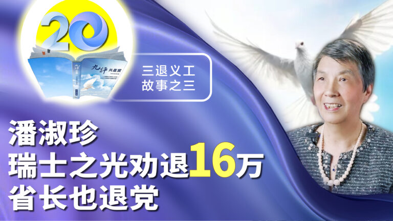 《九評共產黨》已經發表了20年,在這20年中,全球大量的三退義工克服重重險阻,傳《九評》勸三退(退黨、團、隊)。這些義工都有著怎樣的經歷和故事,全球退黨中心推出三退義工系列報道,今天的主角是:潘淑珍。
