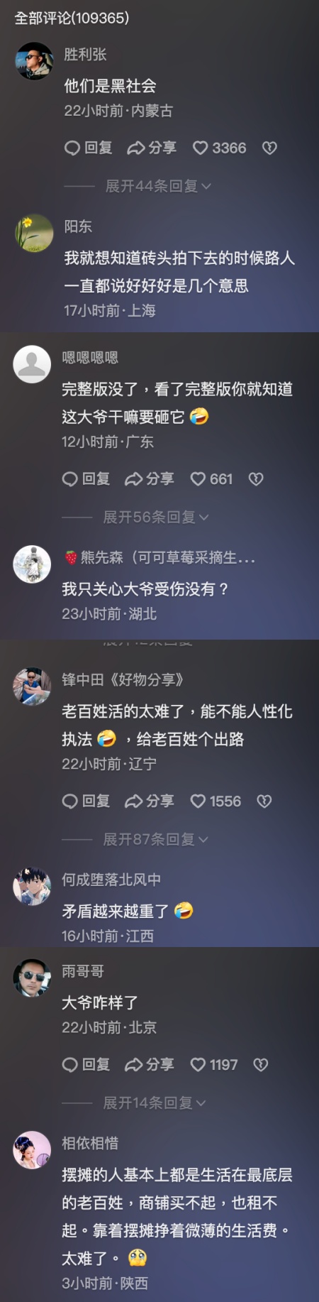 不過,民眾對大爺怒砸城管事件,卻與官方態度大相逕庭。許多大陸網友指責城管人員是「黑社會」。