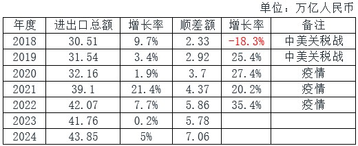 2024全年,據中共海關數據,出口3.6萬億美元,同比增長5.8%;進口2.6萬億美元,同比增長1.1%,順差大幅增至約萬億美元,再創歷史新高。