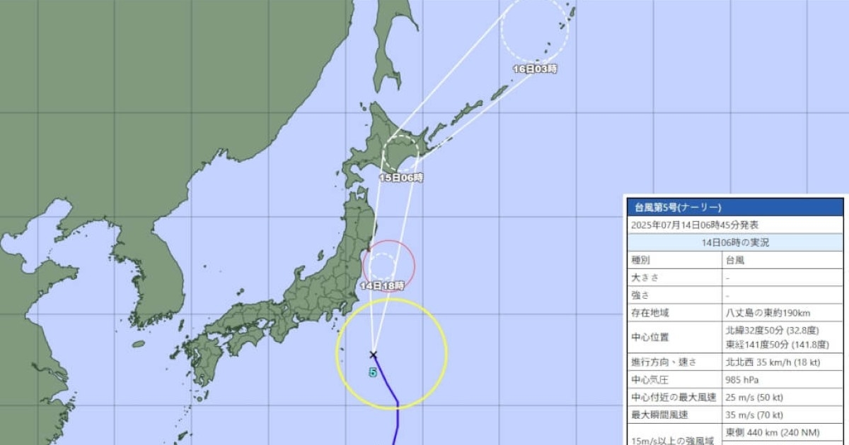 【新唐人北京時間2025年07月14日訊】今年第5號颱風百合(NARI)正往日本前進。日本氣象廳表示,百合威力漸增強,今天(7月14日)到明天之間有機會逼近東日本、北日本,逼近北海道,有登陸的可能性。如果登陸北海道,將是時隔9年登陸。