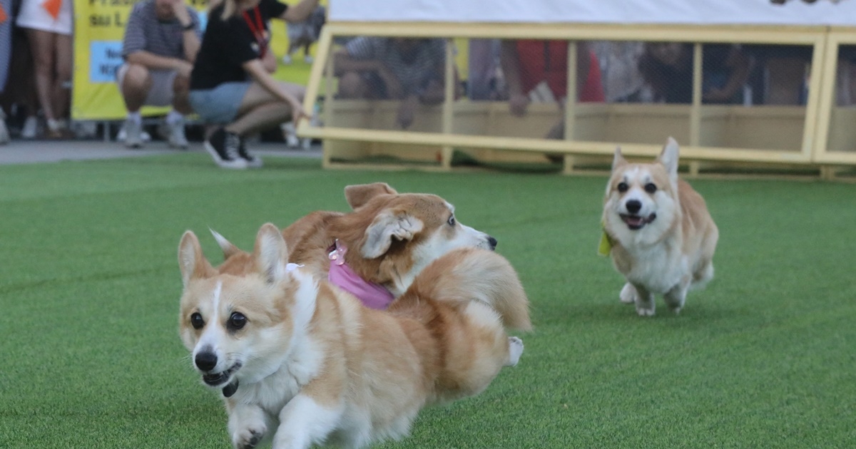8隻柯基犬,在主人的大聲呼喊中衝出起跑線,其中幾隻在一片嘈雜中迅速辨別出主人的聲音,瘋狂朝向終點奔去。其它幾隻則主動開小差,不知道跑去了哪兒。