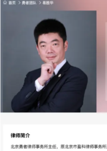 微信公眾號「問津學術圈」亦轉載消息,指易勝華「卸任」北京勇者事務所主任。不過,截至目前,北京勇者律師事務所的官方網站上關於易勝華的個人簡介中,他的身分仍是事務所的主任。