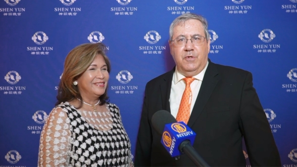 Emy Delgaudio:「神韻令人驚歎!特別是今年的演出,正如我的先生所說,這是我們第三次觀看神韻。作為一位基督徒,我很欣賞神韻凸顯了無神論(帶來的危害),這是我們第一次在節目中看到這個主題。神的恩澤必將引領神韻在未來有更加卓越的表現,我們會為神韻的成功而祈禱。非常感謝能有這個機會表達這些。神韻是在人間履行神的工作,我們心懷感恩。當你在腦海與心靈中注入積極正向的能量,在劇場裡,你就會感受到那樣的力量。這也正是我感受到的。」