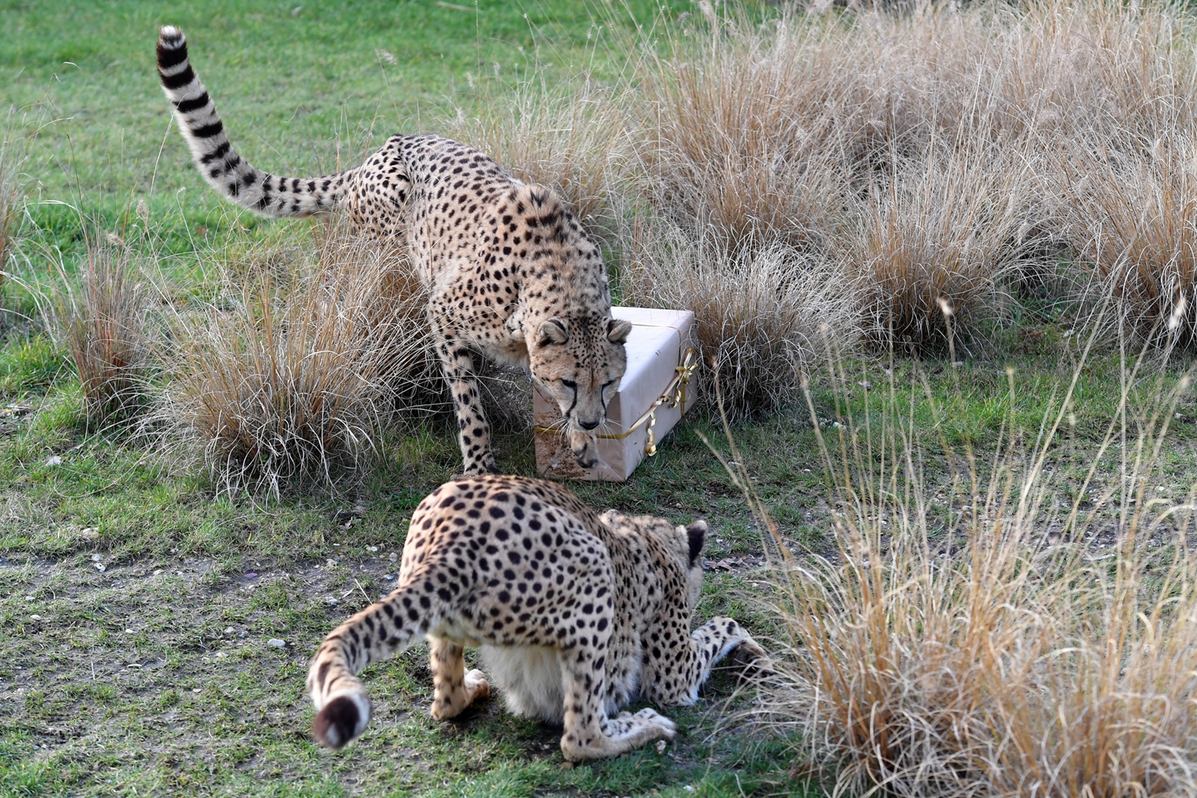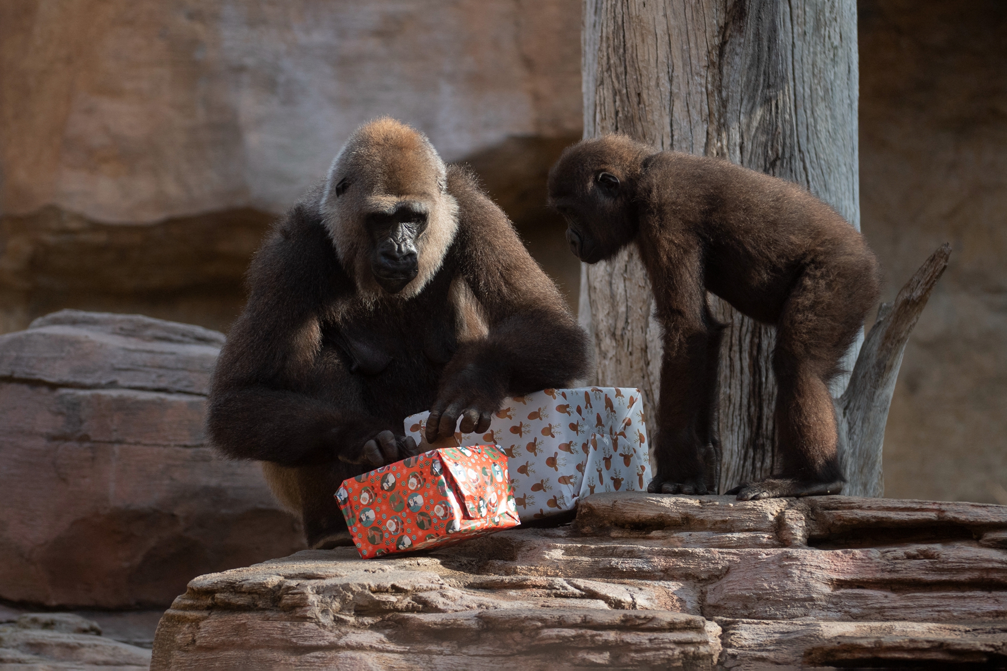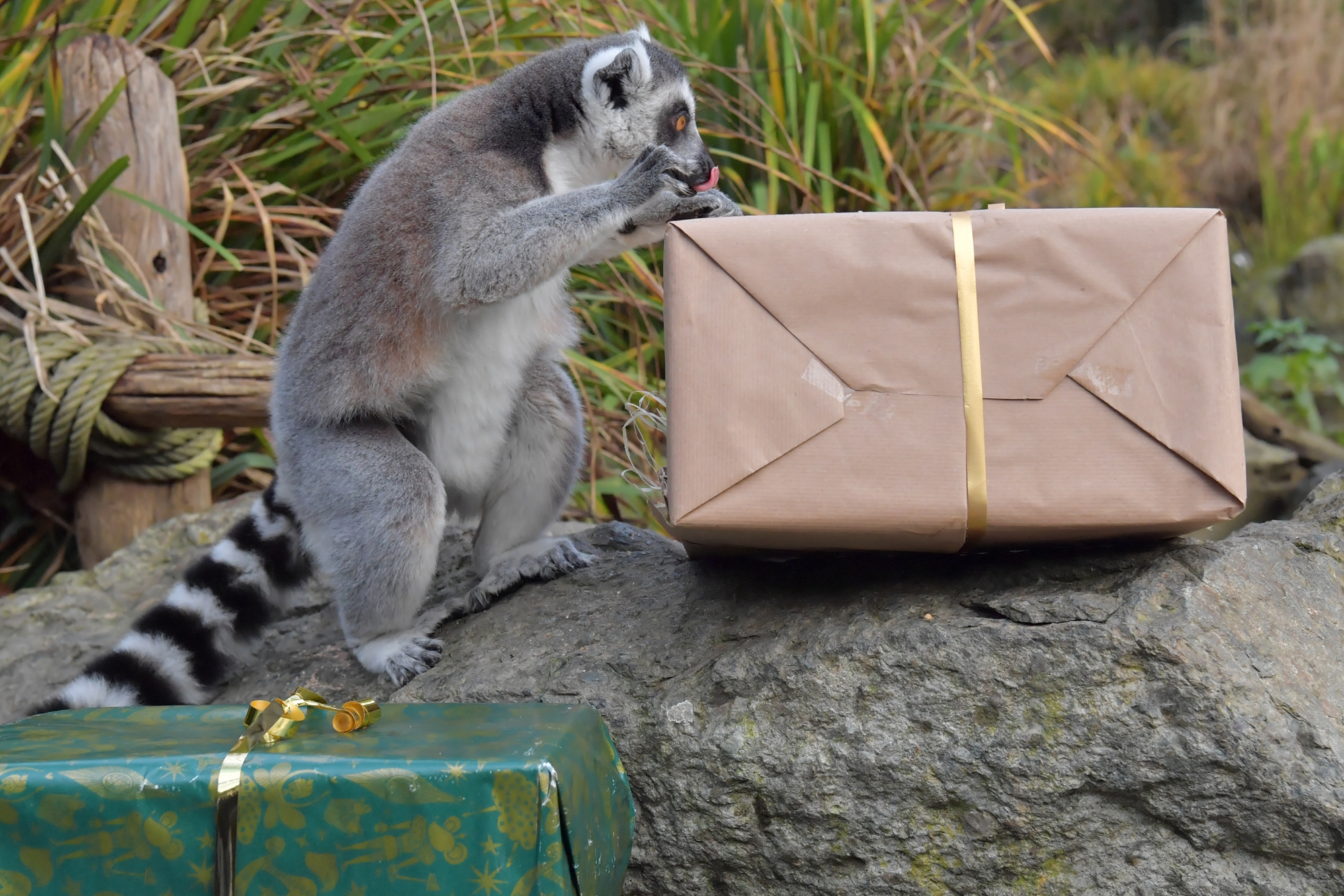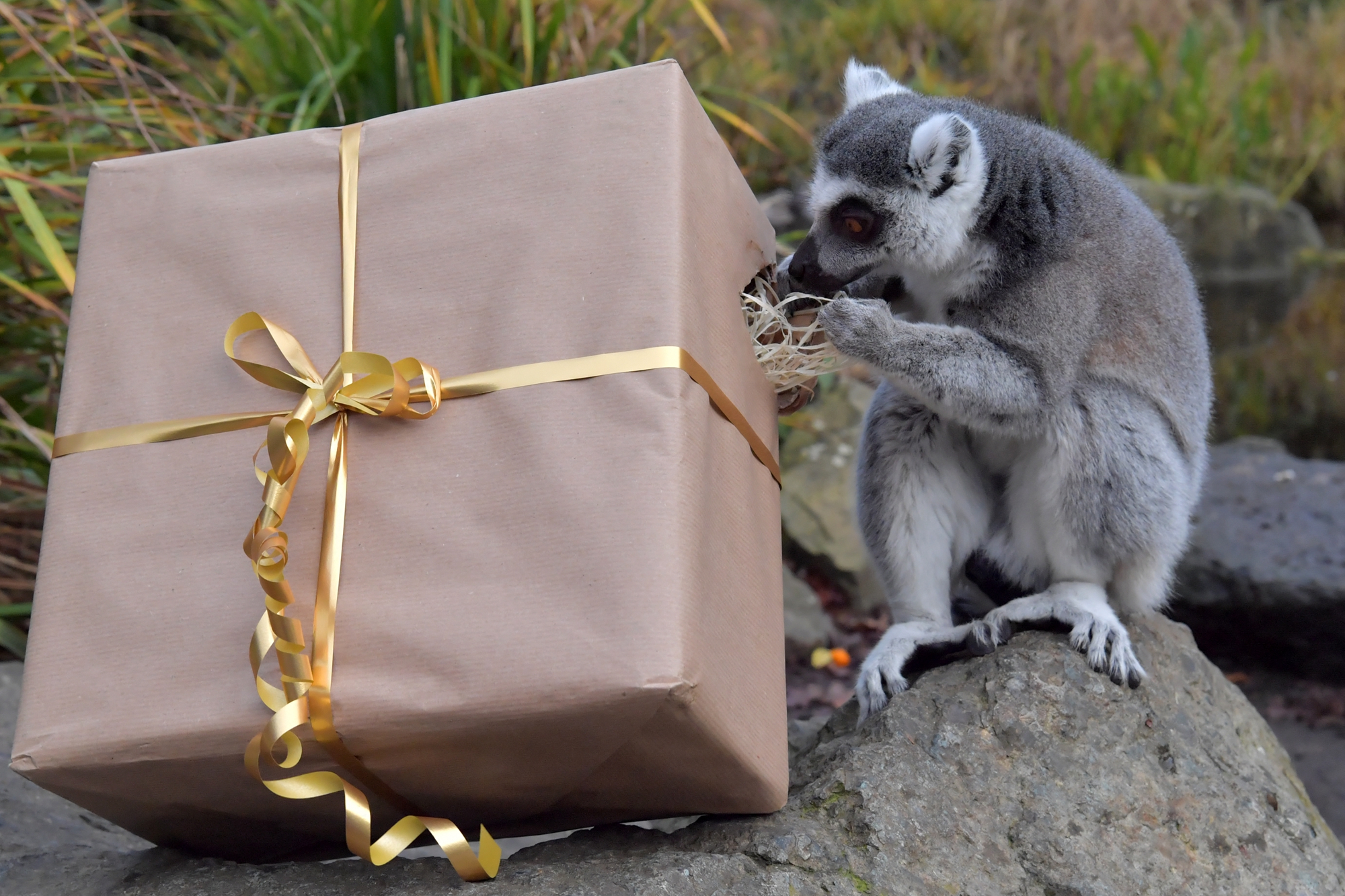 動物園的工作人員通常會將適合各種動物的食物裝在包裝精美的盒子中或聖誕襪裡,草食動物們會獲得新鮮的蔬果禮盒,肉食動物們則大快朵頤地吃肉。據悉,這類有趣的活動除了營造節日氣氛外,也是為了增加動物在野外的求生能力,同時設法撕開禮物包裝還能夠增加動物們的活動量,真可謂一舉多得。