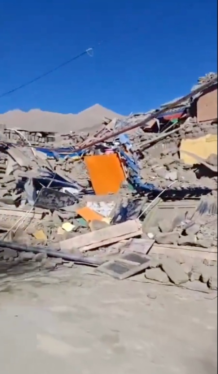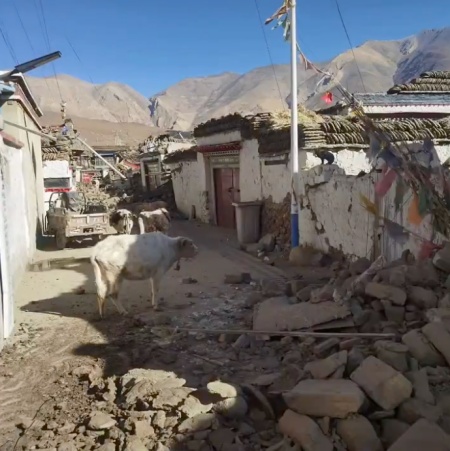 網傳視頻和照片顯示,地震之後的定日縣成了一片廢墟,到處是倒塌的房屋和牆壁,現場一片淒涼。
