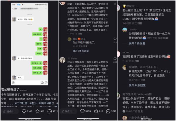 有的是985畢業,在廣州被裁了好幾次,想回老家開挖掘機,還有個成都的,夫妻雙雙失業,還有的介紹自己丈夫在街道工作12年,被降薪一半,變相裁員。