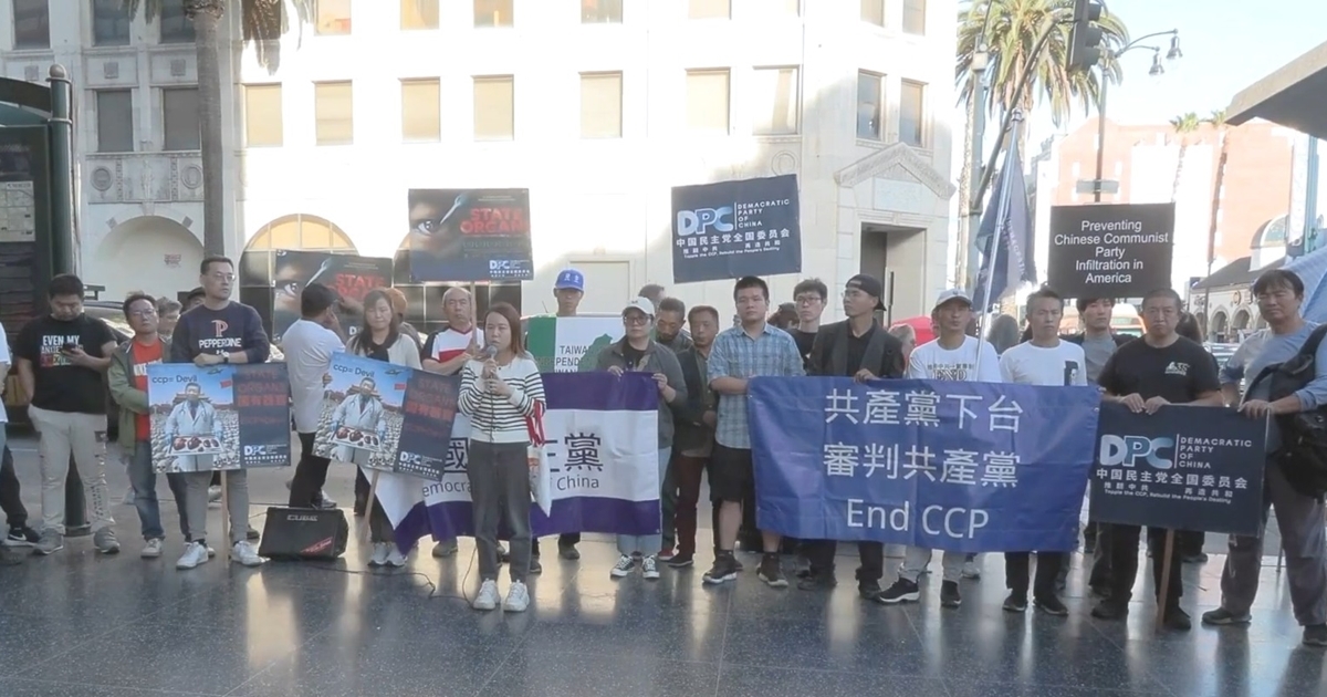 10月19日,洛杉磯部分華人在好萊塢集會,抗議中共以爆炸威脅,阻撓活摘器官真相紀錄片《國有器官》在台灣的上映。