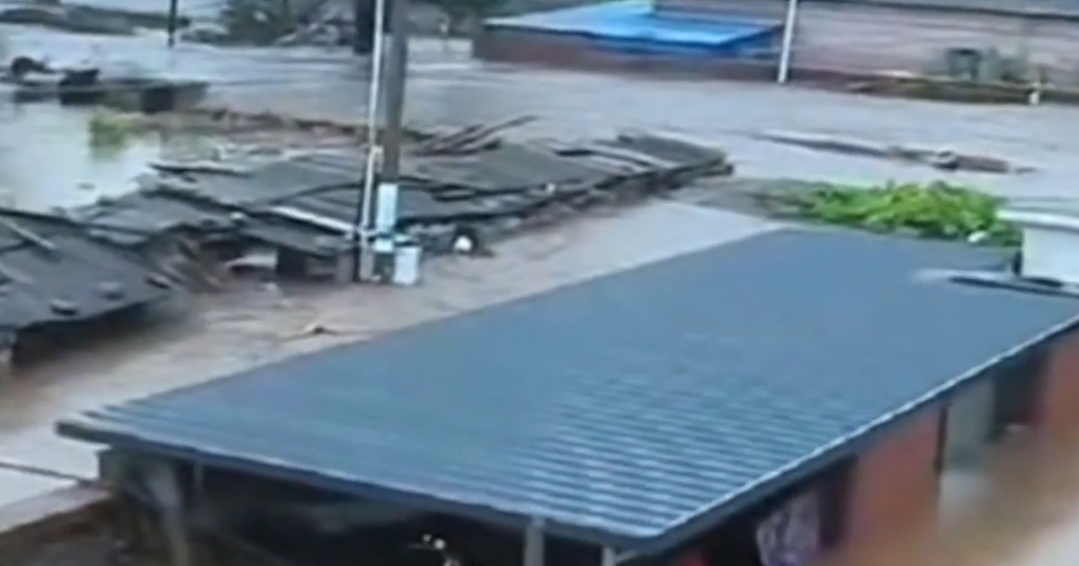 視頻聲音:「那房子已經淹沒了,前面的房子,(房頂)鐵皮都有點看不見了。馬上就到我們這個房子了。」