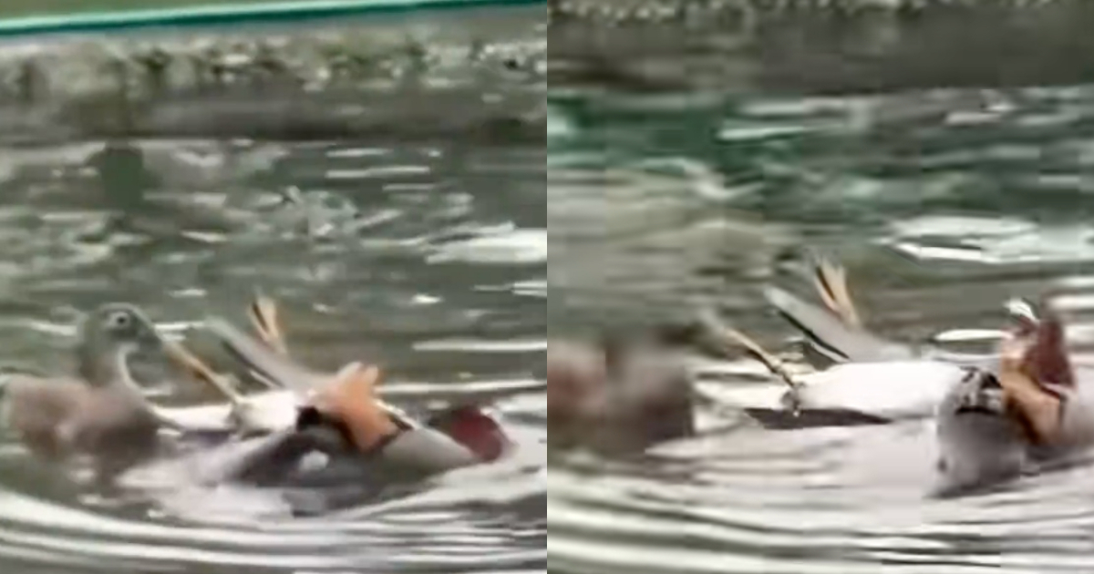 網傳視頻顯示,4月7日,一隻鴛鴦在杭州西湖雷峰塔的湖面被人用彈弓射殺,另外兩隻鴛鴦一直圍著它,不願離去,並且試圖啄醒它,但是被襲擊的鴛鴦已經不幸死亡。