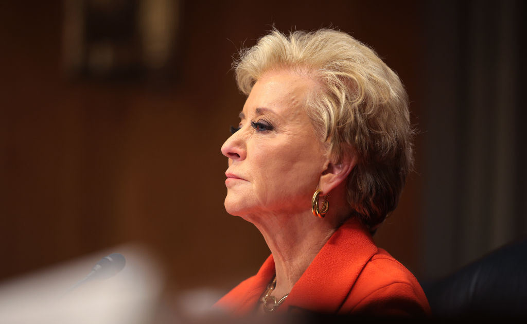 身為新部長,麥克馬洪譴責教育部「不履行職責」,對「學生成績持續低迷」負有責任,而解決方案就是將「教育送回各州」,因為「沒有人比父母更有資格」做出教育決定。
