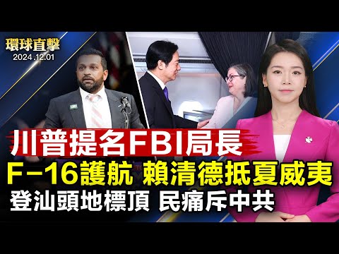 #川普 #賴清德 #新唐人電視台 11月30日,美國當選總統川普又接連提名了三位新政府官員。其中最引人注目的,是任命前國安委員會官員卡什‧巴特爾(Kash Patel)擔任FBI局長,並誓言改革聯邦調查局。 中華民國總統賴清德首次外訪過境夏威夷,F-16戰機護航。