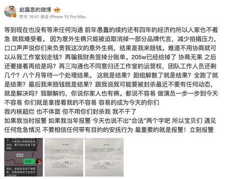 Home 環球要聞 趙露思自爆患重度抑鬱癥 遭經紀公司封殺