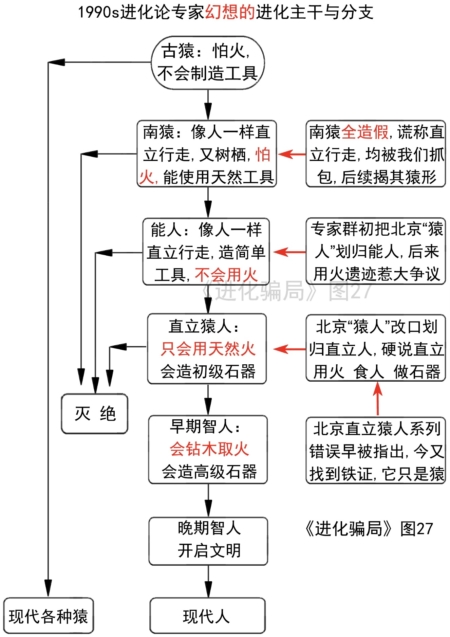 那麼,火跡就是智人(現代人也是智人,和古代智人身體結構差別不大)留下來的,當時已經有人了,還打造什麼「猿人」?造什麼進化論的中間環節?
