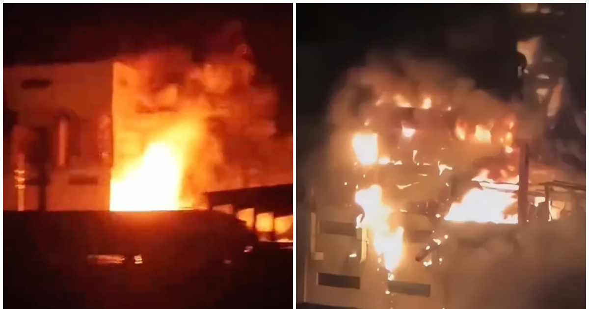 網傳的多個火災現場的視頻顯示,一棟建築物內部燃起熊熊大火,多個窗戶向外冒出火光濃煙,伴隨著一陣陣的爆炸聲。