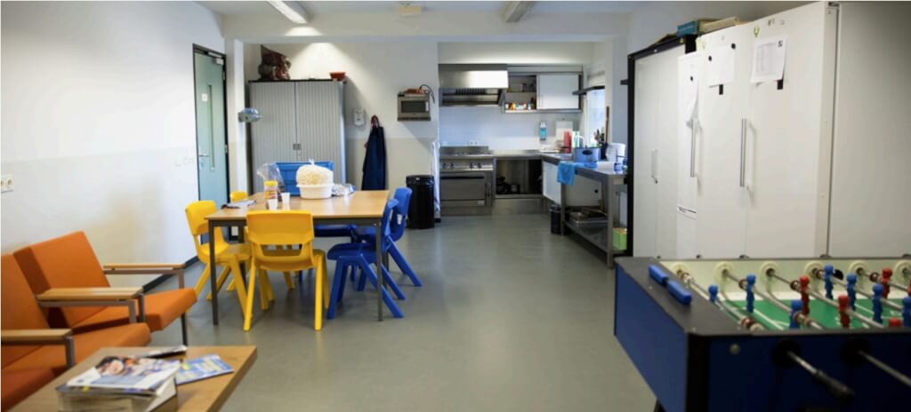 中央社報導,從法院官網上的照片顯示一個公共區域,有桌上足球桌、廚房設施、一張桌子和多把椅子。該中心還設有一個小型醫療設施。
