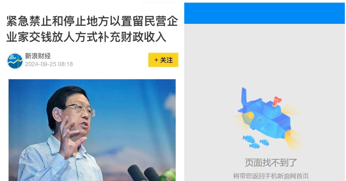 9月25日,中共中央黨校國際戰略研究所副所長,經濟學家周天勇在「新浪財經」的個人公衆號發文,題為「緊急禁止和停止地方以置留民營企業家交錢放人方式補充財政收入」。文章引發廣泛關注。