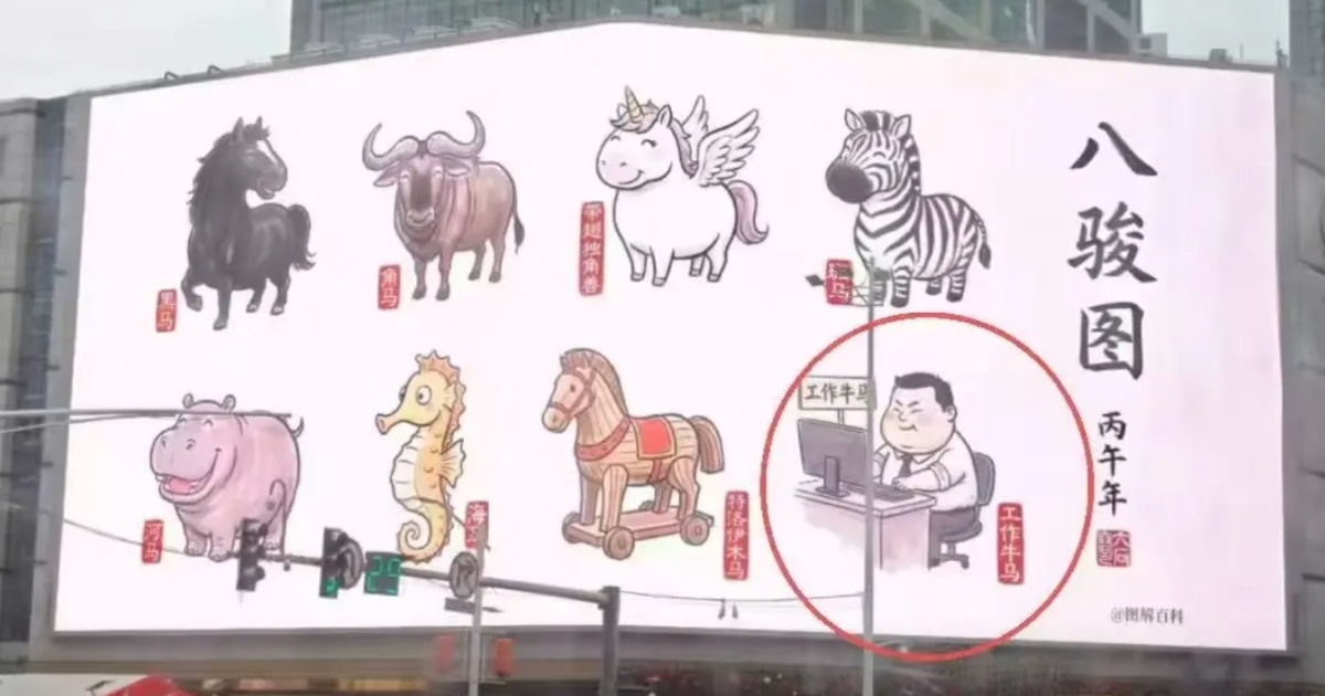 Home 環球要聞 馬年八駿圖驚現「工作牛馬」 暗諷打工人心酸(視頻)