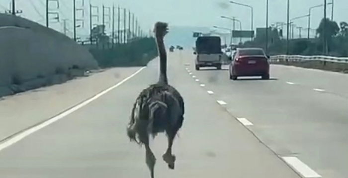 據法新社報導,泰國33歲的男子柴拉特(Chairat Sompong)於4月7日在春武里府一條三線道高速公路行駛時,拍到了一隻年幼鴕鳥在路上奔跑的短片。他在短片中說:「誰在路上丟了一隻鴕鳥?快來把它抓回去。它跑得真快。」