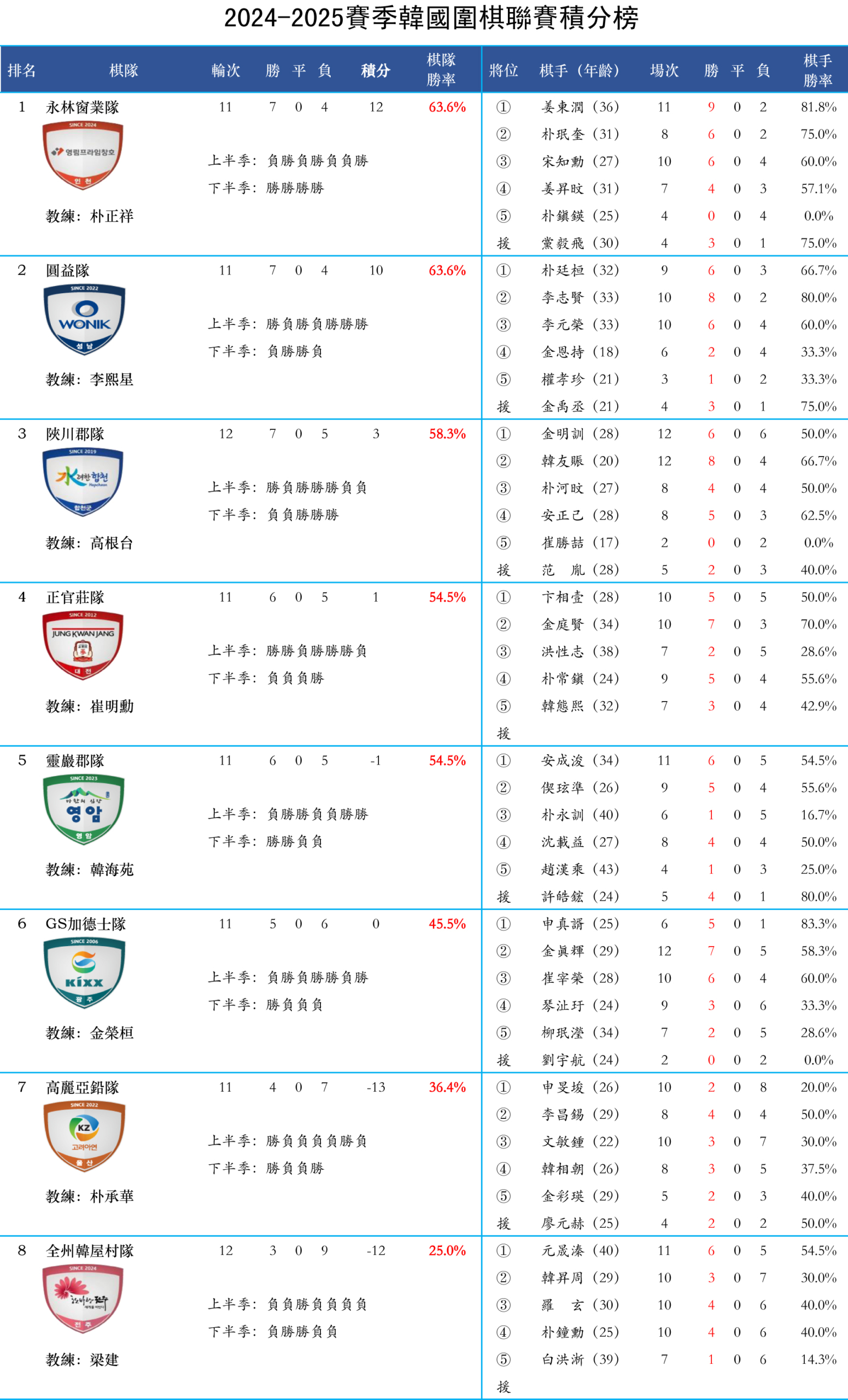 為方便廣大棋迷及時了解比賽進程,新唐人電視台將實時更新韓國圍棋聯賽的積分榜和賽程賽果。